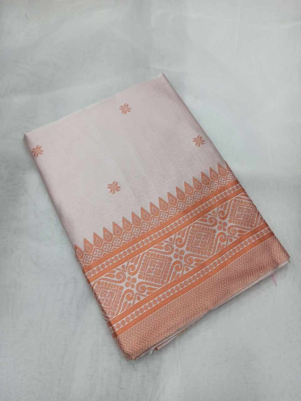 Name : MF 1950 WHITE BANARASI SOFT LICHI SILK SAREE