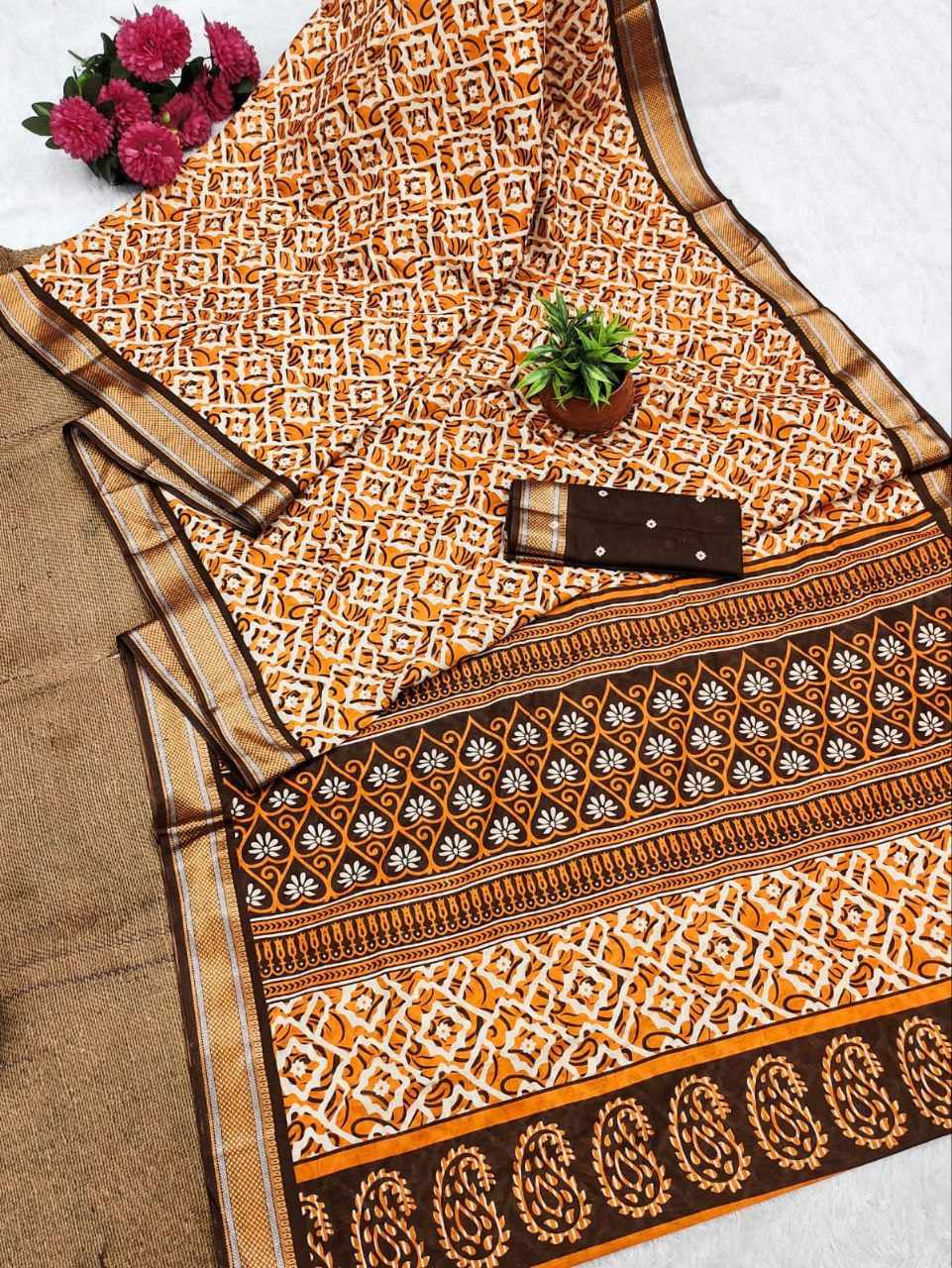 | Name : | JBC 1095 Golden mulmul Cotton Saree |