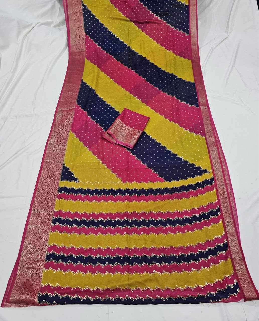 Saree Fabric :march mellow jecard border with foil printed sarees design