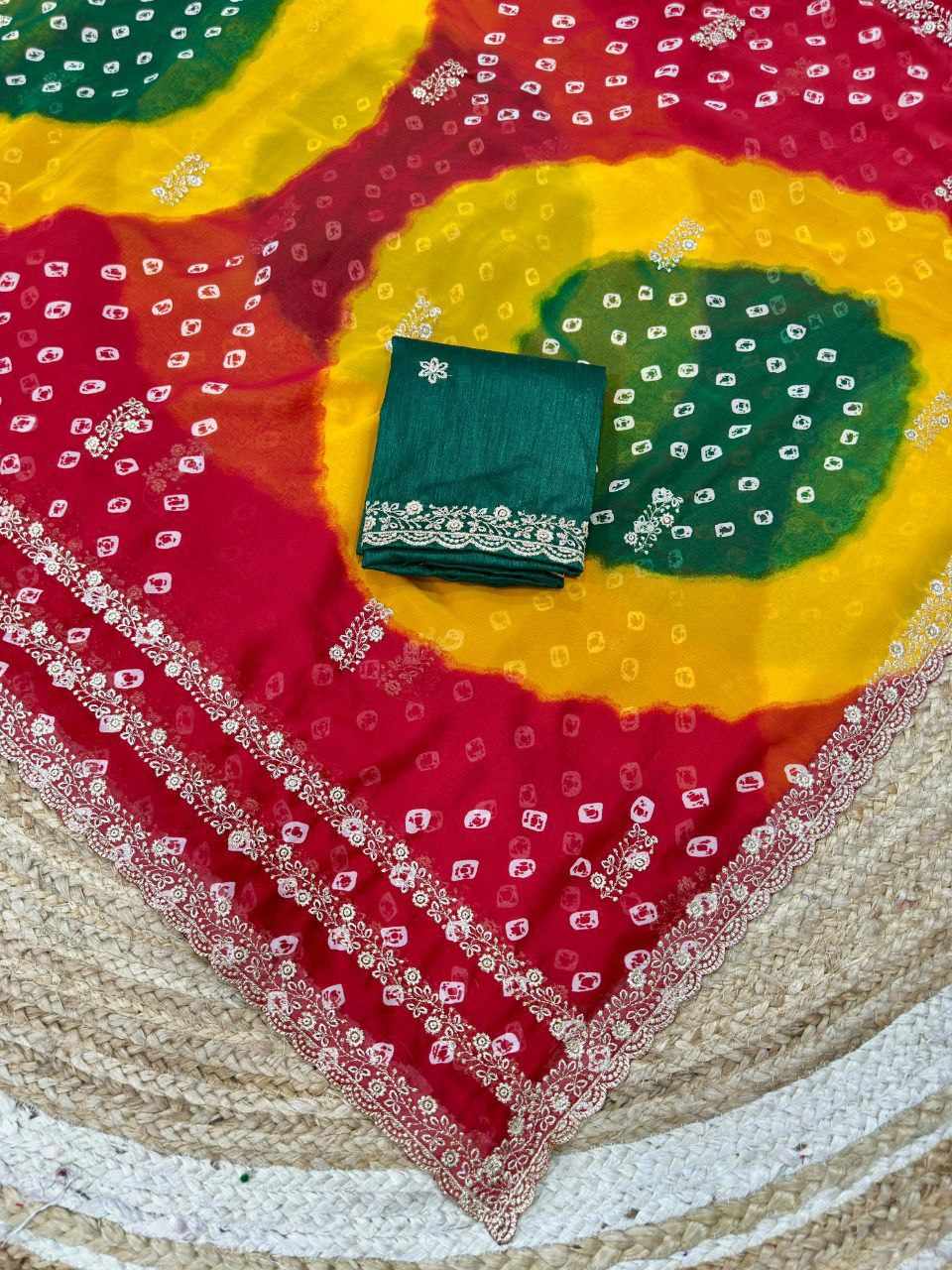 Home / PIYU P1051 LERIYA BANDHANI-3 Red Saree