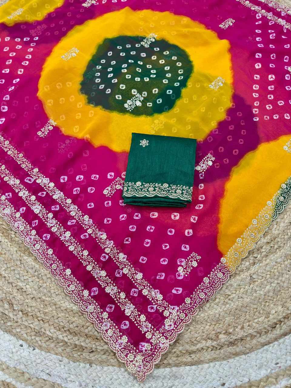 PIYU P1051 LERIYA BANDHANI-3 Pink Saree